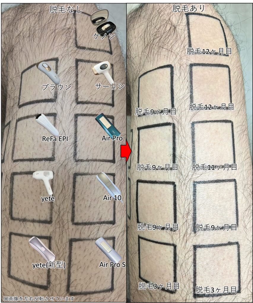 今回は9種類の家庭用脱毛器で3ヶ月間太ももを脱毛し、『脱毛効果』を検証しました